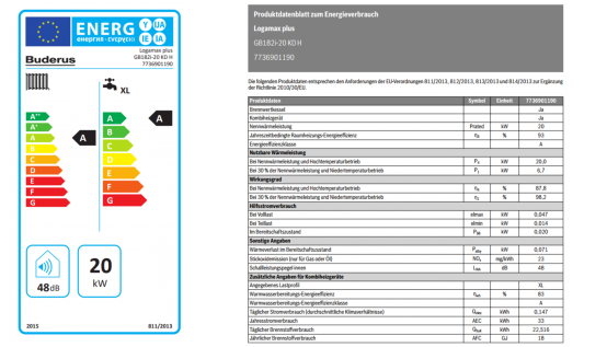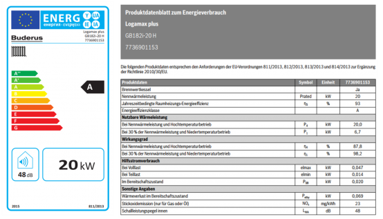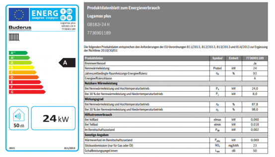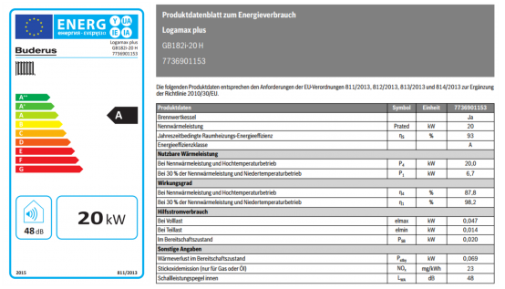 Der Logamax plus GB182i mit moderner Brennwerttechnologie arbeitet in modulierender, bedarfsangepasster Betriebsweise. Die ErP (EU-Richtlinie für Energiekennzeichnung für energieverbrauchende und energieverbrauchsrelevante Produkte) -kompatible Hocheffizienz-Umwälzpumpe kommt mit sehr wenig Strom aus. Das bewährte intelligente Regelsystem Logamatic EMS plus sorgt automatisch für einen jederzeit maximal effizienten Betrieb. Gegenüber einem Altgerät spart die moderne Energieeffizienzklasse A-Gasheizung deutlich an Energiekosten.